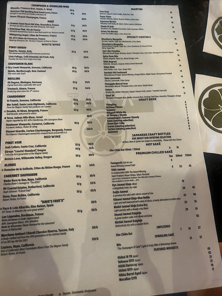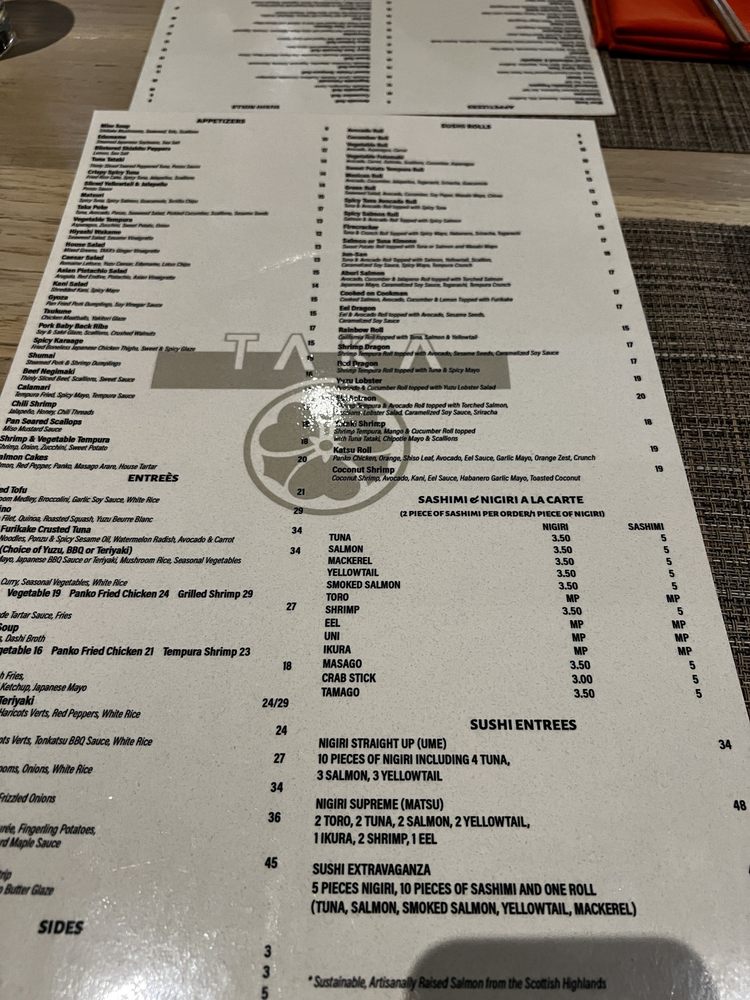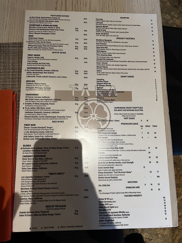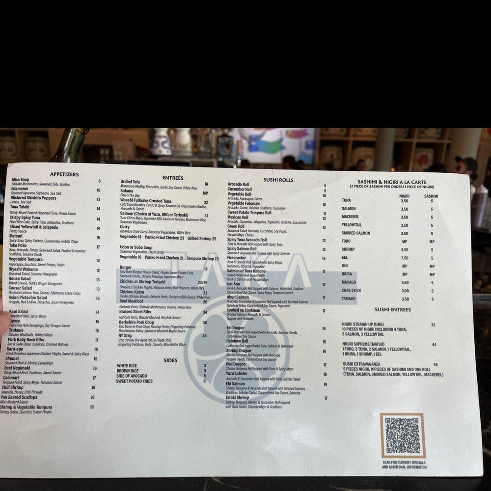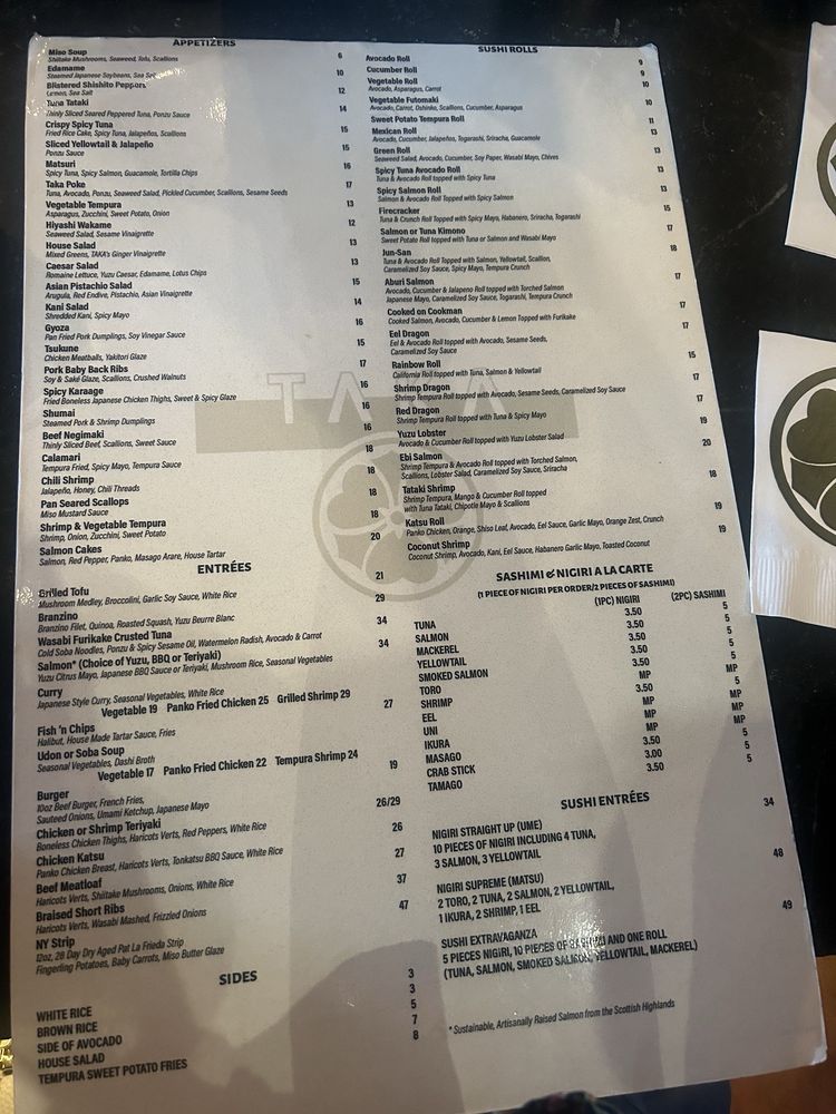 TAKA Menu (2025 Update)