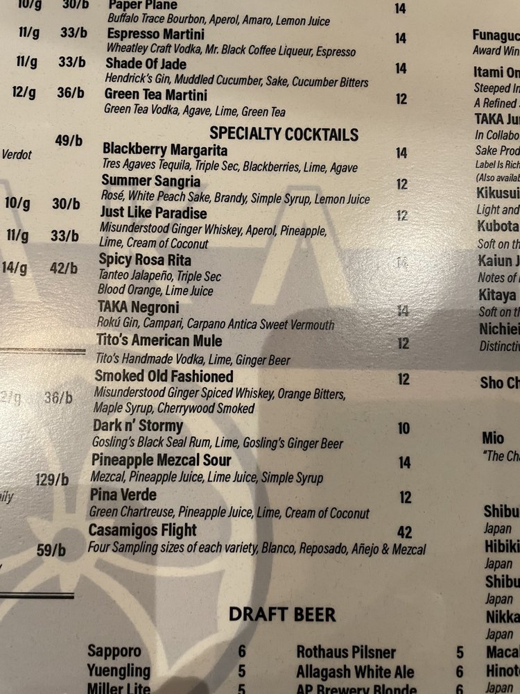 Introducing TAKA, a top choice for sushi lovers in Asbury Park. With a swanky vibe and a great tap list, TAKA offers a menu full of fresh and flavorful sushi options. The spacious restaurant features cute outdoor seating, a large bar, and friendly bartenders ready to give recommendations. Highlights include the blackberry and spicy margaritas, shishito peppers, and a variety of delicious sushi rolls. The extensive menu caters to vegans and vegetarians, with options for everyone. The trendy atmosphere is perfect for a special occasion or a night out with friends. With prompt and friendly service, TAKA promises a delightful dining experience. Come to TAKA and indulge in quality Japanese cuisine in a vibrant setting.
